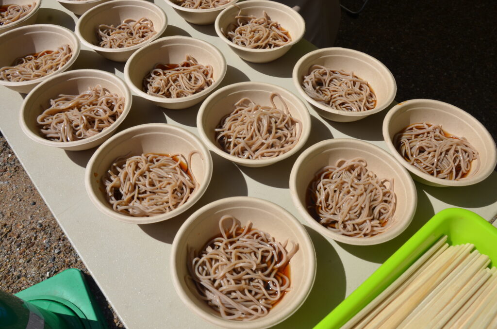 地域の交流の場にと、無料入園日に合わせて開催されるイベントです。地元で採れた新鮮な野菜や果物、加工品などが販売される他、地域住民の協力でノコ汁の振る舞いや、そばの振る舞いも。けん玉・羽子板・おはじきなどの昔遊びを通じた世代間交流コーナーもあります。今年度は「山麓あおぞらフェスタ」も同時開催。キッチンカー14台と地元飲食店が集結します。一日中、楽しめますね。