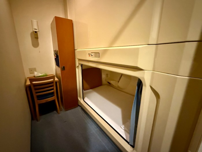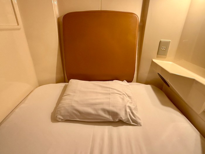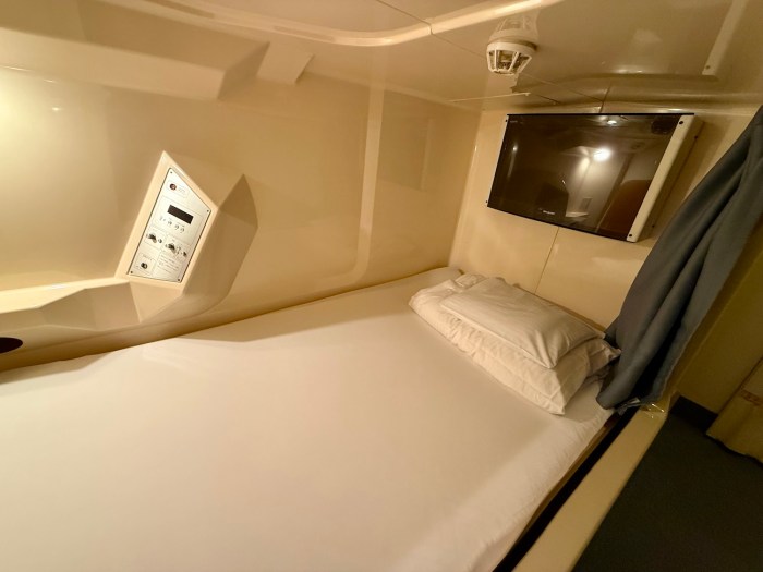 私は疲れていたのか、それとも大浴場でしっかり汗を流した後だったからなのか、ベッドに横になった瞬間にバタンと就寝。カプセルの広さは十分で寝返りもできるレベルだった。